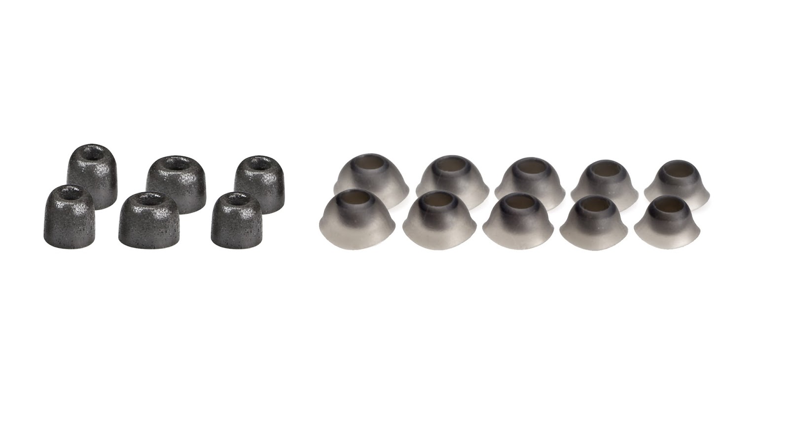 Um optimale Passform zu garantieren, hat beyerdynamic eine Vielzahl von Gehörgängen vermessen und spezielle Ohrpassstücke für den AK T8iE entwickelt. Besonderheit dieser Silikon-Eartips in fünf Größen: Sie sind oval geformt und drehen sich praktisch von selbst in den Hörkanal. Dort sitzen sie bequem ohne jeden Druck und werden von den nach oben übers Ohr geführten Kabeln in Position gehalten. Herausfallende Stöpsel, unangenehm fest klemmende Silikon-Passstücke gehören damit der Vergangenheit an.