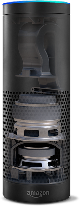 Urządzenie jest sterowane głosem, działa poprzez Wi-Fi lub Bluetootha i ma kilka funkcjonalności niespotykanych w tym segmencie audio. Głośniki są podłączone do kilku muzycznych serwisów streamingowych, m.in. Tuneln, iTunes, Spotify i Amazon Music Library, rozpoznają głos poprzez system 7 mikrofonów z zawanasowanym układem redukcji szumów, dzięki czemu są w stanie usłyszeć właściciela nawet wtedy, gdy gra muzyka, mają także wbudowany serwis newsowy, pozwalający szybko na uzyskanie potrzebnych informacji, np. pogodowych. Echo także na pytanie zadawane głosem, sięgając do Wikipedii i tworzy listy zakupów. Kolumny mają oprogramowanie, które cały czas będzie aktualizowane, dając im nowe możliwości. Częste korzystanie z nich spowoduje z czasem personalizację, która będzie odpowiadać gustom i przyzwyczajeniom użytkownika. Do sterowania służy aplikacja działająca w systemach Fire, iOS i Android. Cena – 199 dolarów.