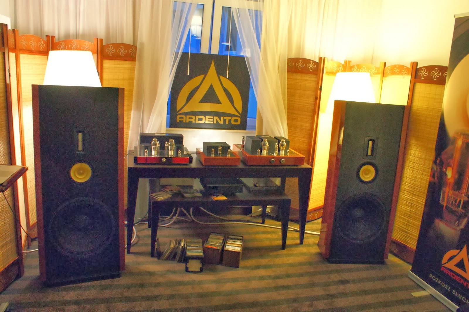 Bydgoska firma Ardento zademonstrowała swoje wzmacniacze zbudowane z wykorzystaniem lamp 300B, firmowy DAC oraz kolumny Alter 2 z 18-calowym miotaczem basu i 8-calowym przetwornikiem szerokopasmowym. Całość robi piorunujące wrażenie – system tworzy muzyczne artefakty, z którymi nawet doświadczeni słuchacze rzadko mają do czynienia. Prawie idealne strojenie i wyjątkowo efektowny wygląd.