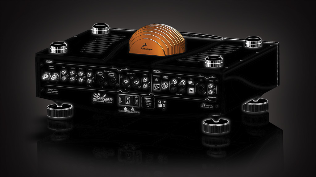 Widoczny na zdjęciach obiekt to Antelope Audio Rubicon – pierwszy na świecie konwerter DA/AD z rubidowym zegarem atomowym. Jego zastosowanie – jak twierdzi producent – praktycznie rozwiązuje problem jittera i wynosi jakość dźwięku na nowe wyżyny. Urządzenie może przetwarzać sygnał o częstotliwości 384 kHz poprzez terminal USB, a także bezprzewodowo, co oznacza, że źródłem może być choćby iPhone. Rubicon pełni jednocześnie funkcje wzmacniacza słuchawkowego oraz przedwzmacniacza gramofonowego. Więcej – click here