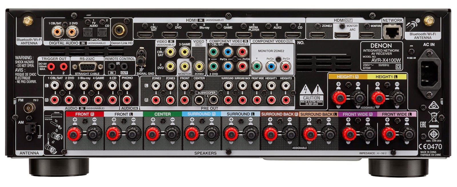 Oferując 8 wejść HDMI i 3 wyjścia HDMI, AVR-X4100W jest gotów przejąć kontrolę dosłownie nad wszystkimi urządzeniami cyfrowymi, jak odtwarzacze Blu-ray, odtwarzacze mediów, kamery i inne w tym samym czasie. Zaawansowany procesor obrazu w AVR-X4100W został stworzony, by obsłużyć przyszłe wymagania 4K Ultra HD 50/60 Hz i oferuje sub-sampling pass-through 4:4:4 Pure Color 4K, wszystko zgodnie z najnowszą specyfikacją HDMI. Umożliwia to także konwertowanie w górę i transkodowanie sygnału ze źródeł obrazu standardowej rozdzielczości i wysokiej rozdzielczości aż do 4k Ultra HD 50/60 Hz celem osiągnięcia najlepszych możliwych wrażeń z oglądania filmów.