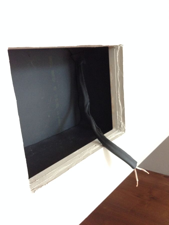 Przygotowany otwór pod montaż głośnika Dynaudio IP24 – dedykowana skrzynia rezonansowa wypełniona materiałem akustycznym, podwójnie płytowana zabudowa g/k, kabel zabezpieczony przed przypadkowym rezonowaniem z obudową, szczelny montaż.