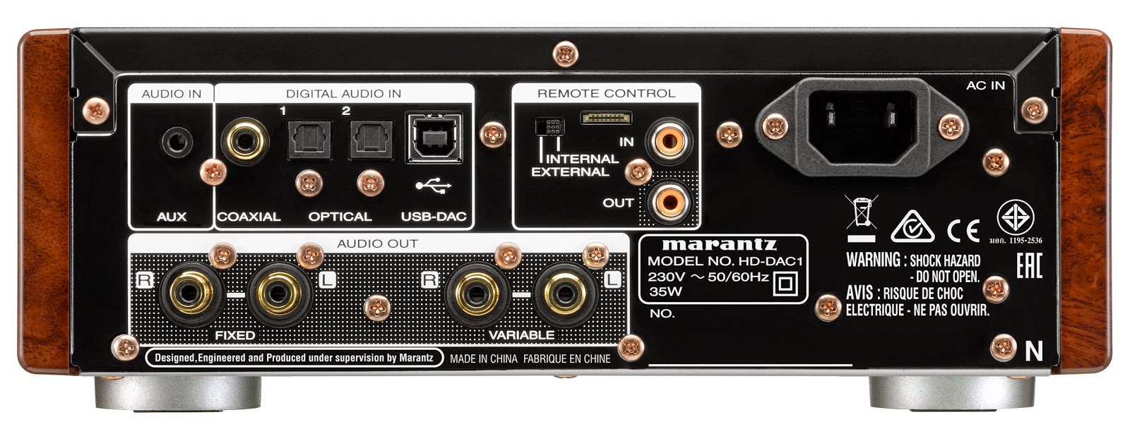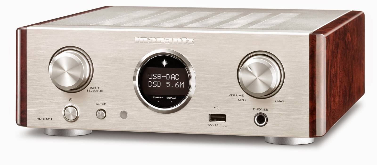 HD-DAC1 posiada tak dużo mocy, że bez problemu współpracuje z audiofilskimi słuchawkami o wysokiej impedancji nawet do 600 omów. Wszystko dzięki trzystopniowej regulacji wzmocnienia, modułom Marantz HDAM-SA2, wysokoprądowemu przetwornikowi DAC (CS4398) oraz najwyższej jakości wyjściom RCA. HD-DAC1 ma na tyle dużą moc, że może zasilić nie tylko słuchawki, ale także możesz bezpośrednio podłączyć go do swojego zintegrowanego wzmacniacza Hi-Fi lub też podłączyć do pary aktywnych głośników lub wzmacniacza mocy. Posiada także szerokie możliwości połączeniowe. Wejście cyfrowe koaksjalne i optyczne, a także port USB-B umożliwiają strumieniowanie muzyki bezpośrednio z komputera PC, czy MAC. Urządzenia przenośne marki Apple mogą być podłączone za pomocą wejścia USB w przednim panelu. Aby jeszcze bardziej poprawić możliwości połączeniowe urządzenie posiada także wejście analogowe. Port USB-B działa w trybie asynchronicznym, aby obsłużyć nie tylko dźwięk wysokiej rozdzielczości o parametrach 192 kHz/ 24 bity, ale także pliki o formatach DSD 2.8MHz i 5.6MHz dla maksymalizacji jakości odtwarzanego materiału audio i umożliwienia najbardziej bezpośredniego sposobu cieszenia się ze świetnej jakości dźwięku. Aby zapewnić najwyższą jakość specjaliści Marantz zastosowali izolację wokół wejścia USB-B, aby ograniczyć niebezpieczeństwo zakłóceń przez wysokie częstotliwości generowane przez komputer podłączony do HD-DAC1. We wzmacniaczu słuchawkowym znajduje się też układ niwelujący zniekształcenia jitter i układ podwójnego zegara (Dual Clock) zwiększający precyzję odtwarzania dźwięku. Bez wątpienia, HD-DAC1 zapewni ucztę nie tylko dla uszu, ale także dla oczu, ze względu na jego piękny wygląd. Solidny, aluminiowy przód wraz z dwuwarstwową płytą dolną oraz bocznymi panelami o drewnianych elementach w stylu retro sprawia, że HD-DAC1 prezentuje się naprawdę świetnie. Istny majstersztyk. HD-DAC1 Marantz będzie dostępny w kolorze czarnym i srebrno-złotym począwszy od października 2014.