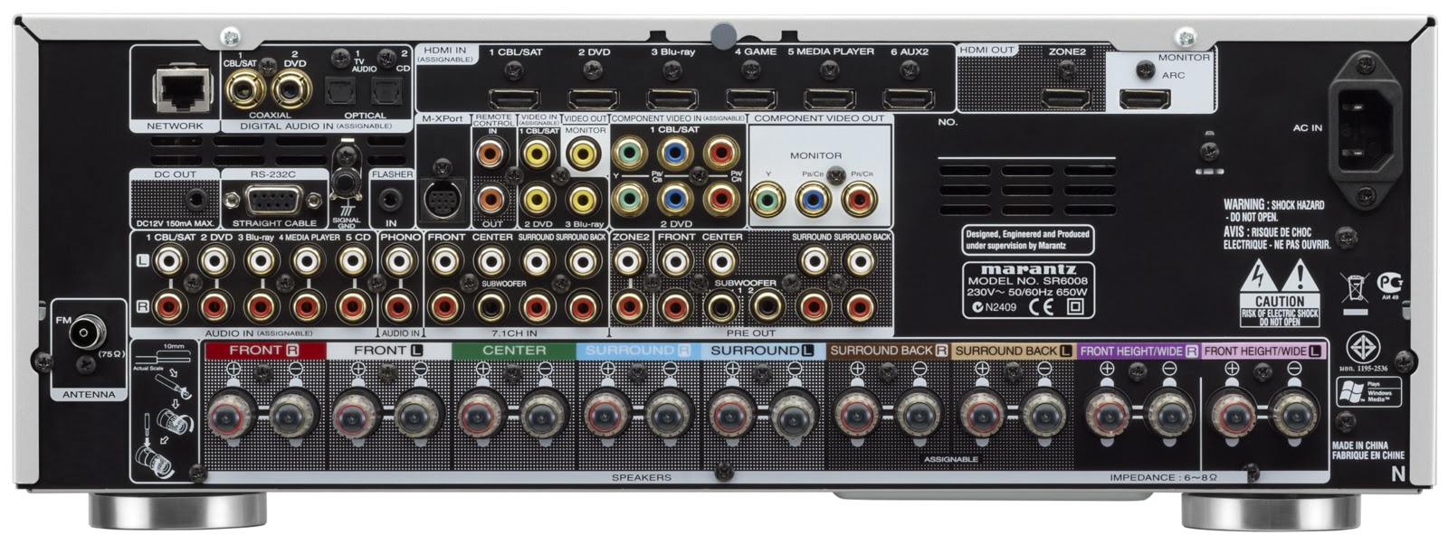 Wymagający entuzjaści kina domowego mogą wybrać wyższy model – SR6008. Jest on wyposażony w sekcję wzmacniacza o mocy 7×185 W, siedem wejść i dwa wyjścia HDMI. Technologia InstaPrevue umożliwia podgląd wszystkich podłączonych do wejść źródeł HDMI na ekranie, w formie podglądu obraz-w-obrazie; drugi port HDMI pozwala innym odbiorcom cieszyć się dźwiękiem i obrazem lub muzyką w innym pokoju, podczas używania systemu w głównym pomieszczeniu. Dotychczas dostępne tylko w wyższej klasy urządzeniach, teraz też w SR6008 dostępne są Audyssey DSX i DTS Neo:X 7.1 do obsługi dodatkowych kanałów efektowych (dodatkowe głośniki surround – przód Wide i Height). Dodatkowo, nowe urządzenie wspiera wyjście drugiej strefy ze źródeł cyfrowych (HDMI, optical, coaxial lub sieć) do odtwarzania różnej zawartości audio w tym samym czasie w głównym pomieszczeniu i w drugim pomieszczeniu. Dla fanów winyli dostępne jest także wejście phono MM. Sprzęt jest wyposażony w system Audyssey MultEQ XT Pro, najbardziej dokładny system kalibracji pomieszczenia z algorytmem optymalizacji jaki jest aktualnie dostępny. Aluminiowy front dopełnia całości tego amplitunera A/V klasy premium.