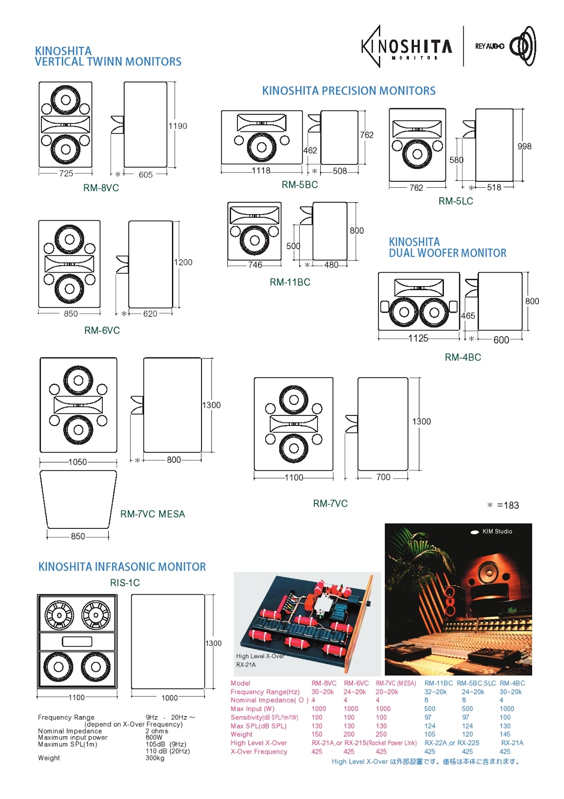 Na całe życie wybiera się takie poczciwe kloce jak RM-7V. Ten wymyślony w 1986 roku monitor potrafi oddać wszelkie niuanse muzyczne oraz subtelność każdego cienia i choć nie wygląda na uosobienie wyrafinowania – mieści się przecież na jego szczytach. Konwersacyjna wszechstronność tych kolumn, uczciwość w przekazywaniu detali i wyrozumiałość dla największych ekstrawagancji sprawiły, że są one nie tylko idealnym partnerem dla wymagających audiofilów, ale także ulubionym towarzyszem najznakomitszych inżynierów i reżyserów dźwięku na świecie. Kinoshita Monitors służą już w blisko 350 profesjonalnych studiach w 18 krajach, w tym m.in. w Bop Recordings Studios w Republice Południowej Afryki i w rosyjskim Mosfilmie.